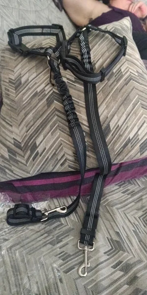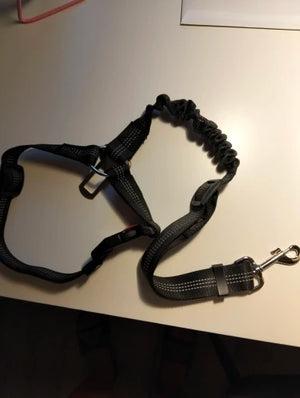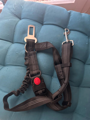 Keep your dog secure and comfortable on every trip with this simple 2-in-1 seat belt and leash. It clips into your car to prevent sudden movement, and the elastic bungee absorbs bumps for a smoother ride. When you arrive, just unclip and walk — no extra gear needed.
